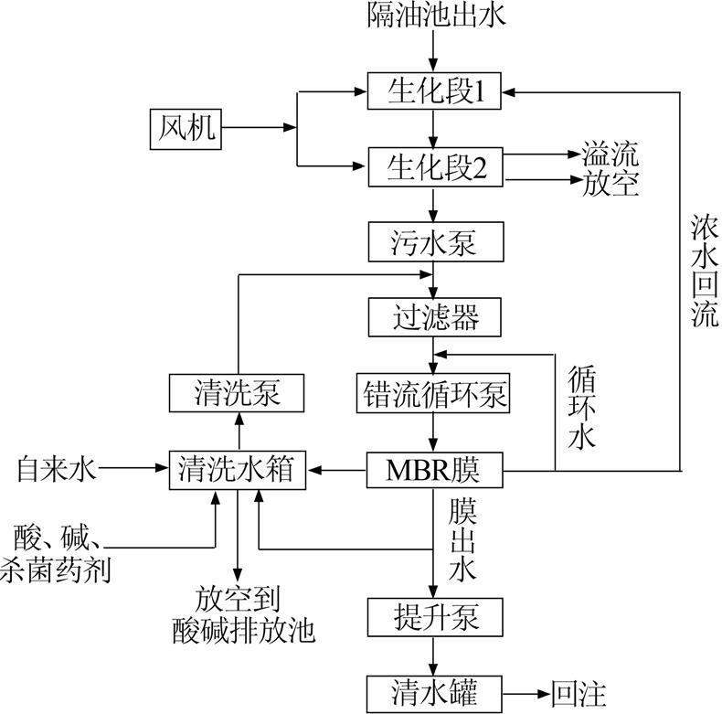 在充分調(diào)研基礎(chǔ)上形成的水處理工藝設(shè)計(jì)方案,有效地解決了設(shè)備體積小、含油廢水處理難度高的技術(shù)難點(diǎn),在保證出水指標(biāo)的基礎(chǔ)上,合理利用有效空間,形成了生化處理+膜處理的獨(dú)特處理工藝。經(jīng)處理后,管式膜出水油≤5 mg/L,懸浮物粒徑中值0.5 μm,SS 0.7 mg/L,SBR為0。