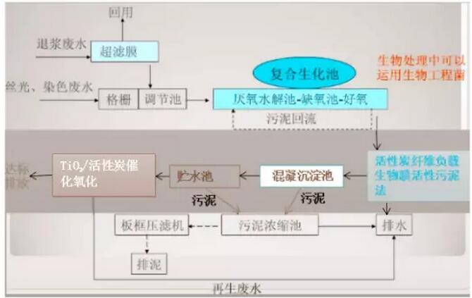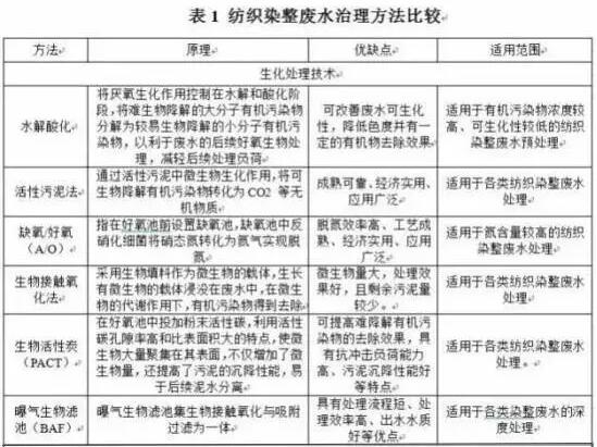 目前紡織染整廢水治理多選用預(yù)處理后,以生物處理技術(shù)為主,物理化學(xué)處理技術(shù)為輔的綜合處理技術(shù)。